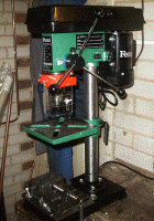January 2003Thursday 9th January 2003Armed with my new motor shafts, I removed the drive sprockets from the old winch motors and bolted them to the new shafts. After that I had to secure a sleeve to the end of the shaft so that it would fit the inside of the bearing that were going to support the free end. To lock the sleeve in place I needed to drill a small hole through the sleeve and shaft, in which I would insert a spring pin. I held the shaft in the hand vice and then used my cheap and "no so cheerful" bench drill to drill the hole. The result was awful as the drill bit jittered around, and made the hole anything but true and straight. That was it, this was the last time I would use that lousy bench drill! In a fit of depression I went off and ordered a more sturdy bench drill from Screwfix.com on-line. Their catalogue had just plopped on my doormat advertising post Christmas sales, so this was an opportunity I couldn't resist.