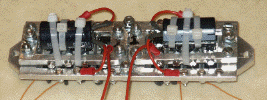 September 2002Saturday 7th September 2002I bolted together one new MOSFET brick and started to wire it up. It was now looking quite solid and when I put it on the scales to see how it compared to the old bricks, I found it weighted exactly the same as two old bricks. However, the newer brick had the complete H-bridge driver on it rather than being split between two bricks on the old circuit, and the newer one was a lot more compact too. When I get it finished, I will try it out to see how it performs before I embark on cutting out the new parts for the second brick. |