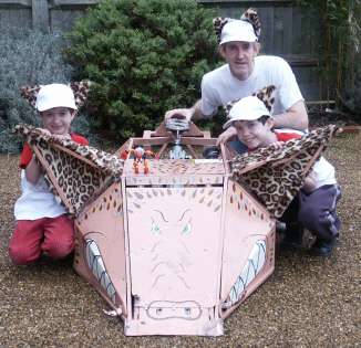 These young lads in the wheelbarrow are the main reason why I embarked on building a robot. They are all my sons, and all Robot Wars fanatics. From left to right they are: